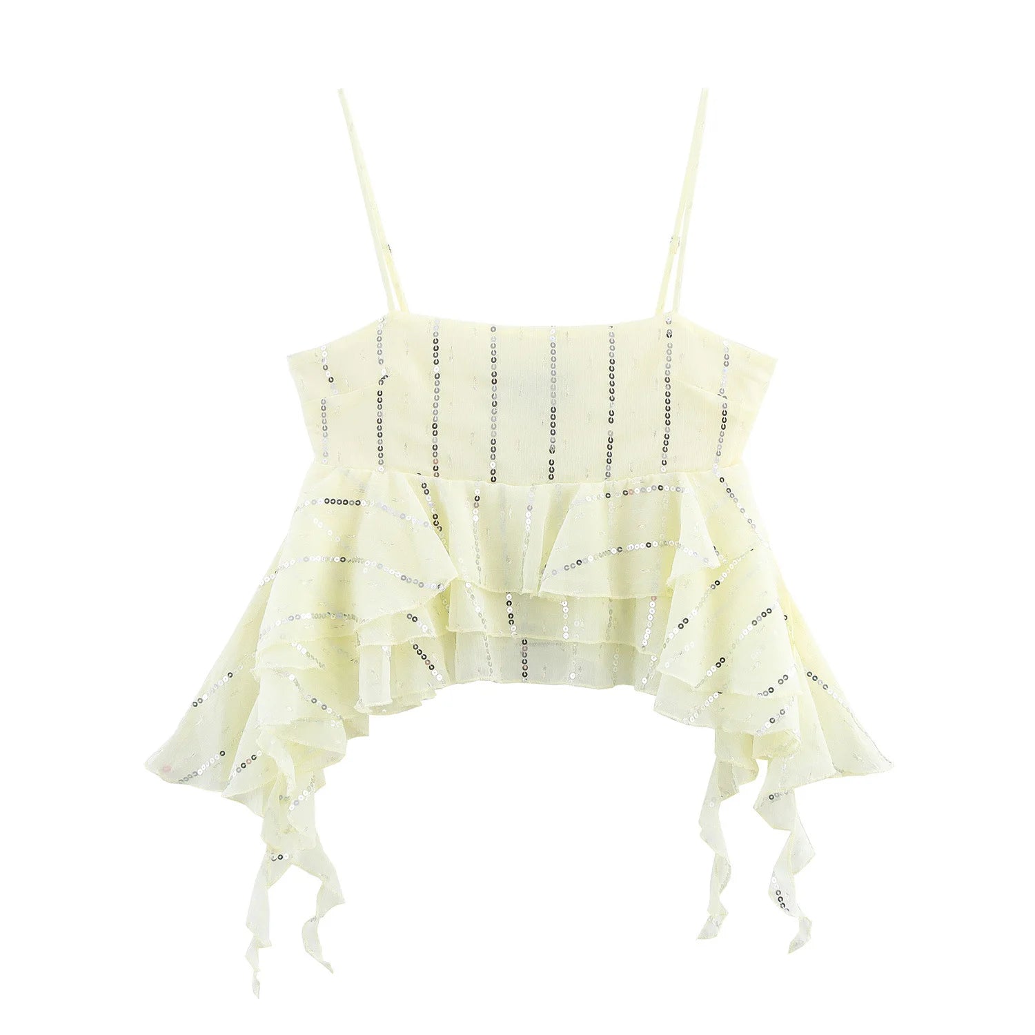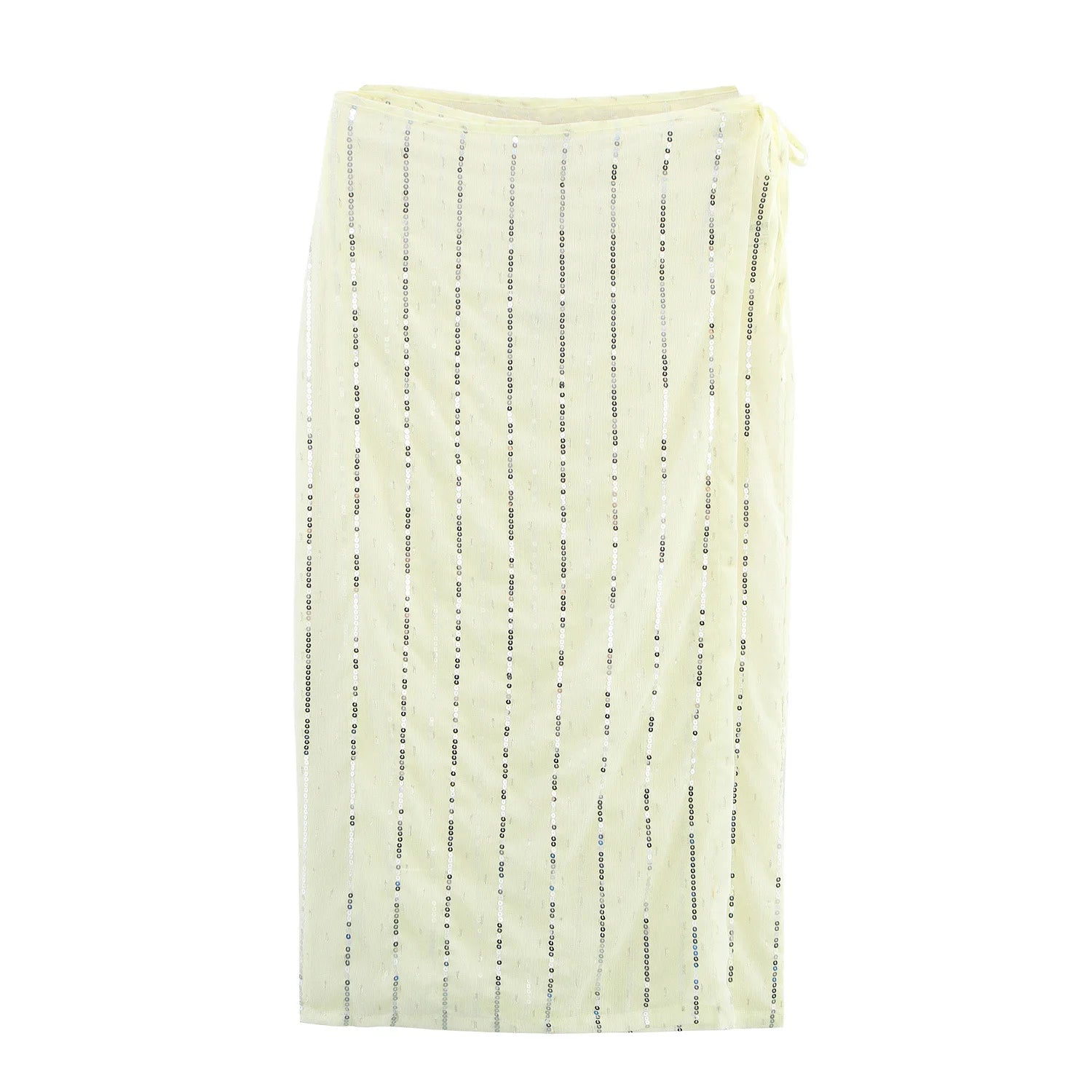Crafted from a premium blended polyester fabric with over 96% synthetic fiber content, this two-piece set is light, breathable, and beautifully shaped. The top showcases layered textures with sequin embellishments that subtly catch the light, while the skirt features a casual drawstring closure for adjustable comfort. Whether worn as a set or styled separately, both pieces are designed for versatility and visual interest.