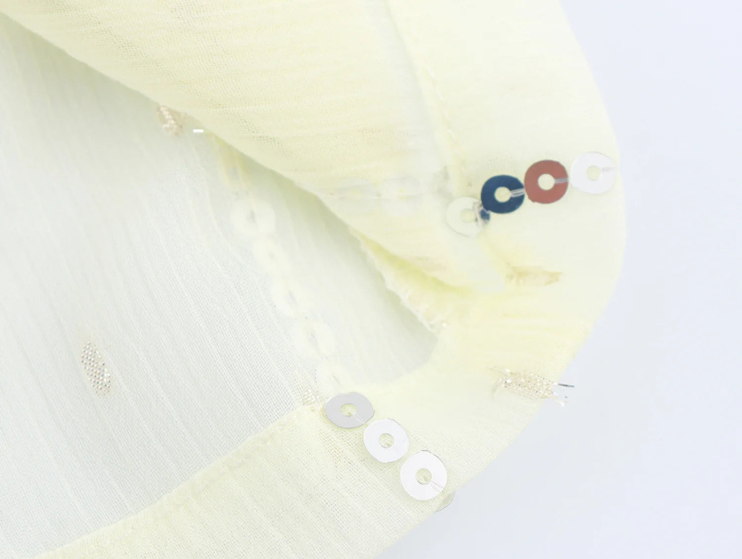 Fabric: Blended polyester with layered decoration and sequin detailing