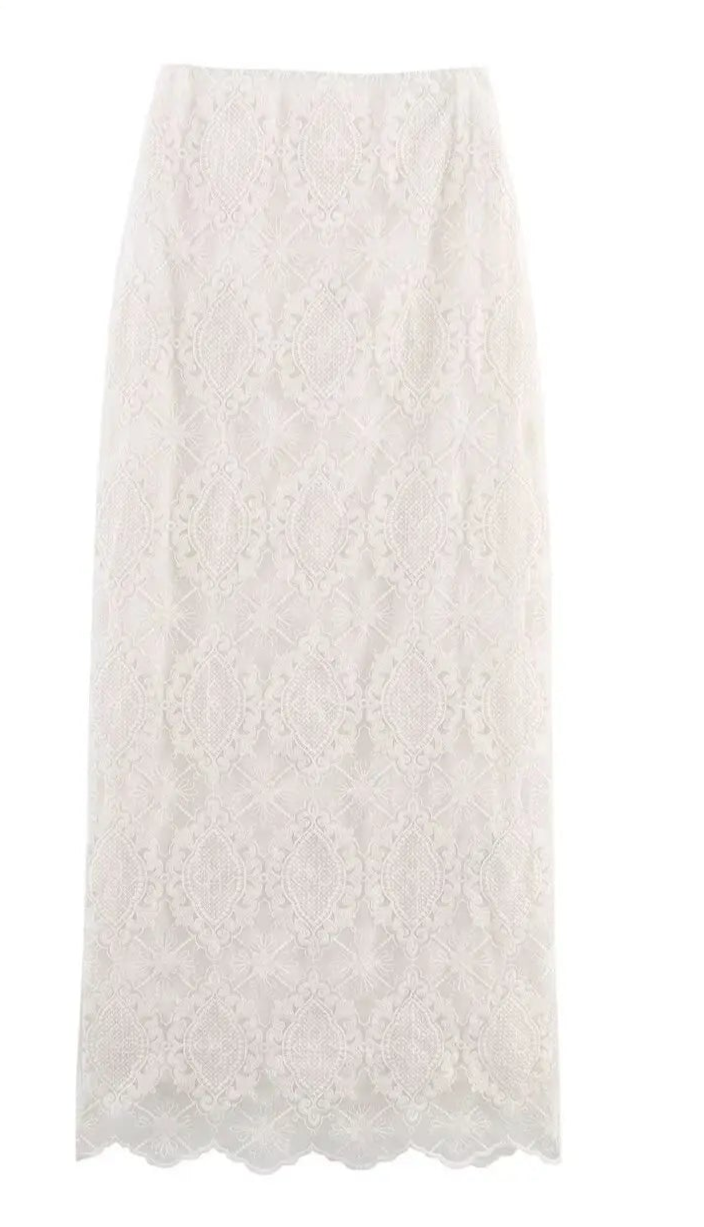 Crafted from woven synthetic fiber with an ultra-soft touch, this set is embroidered with floral motifs that bring a touch of femininity to its casual-cool tone. The mesh fabric offers gentle sheerness, adding texture without compromising comfort. Decorative threadwork elevates the design, while a rear slit adds function and flair for ease of movement. The skirt is fastened with a clean zipper fly, ensuring a smooth, flattering fit.