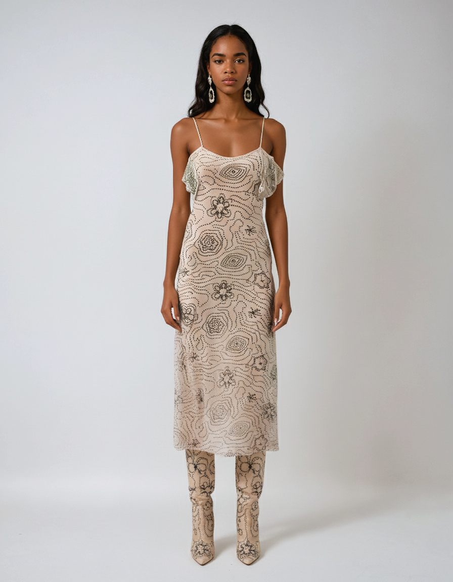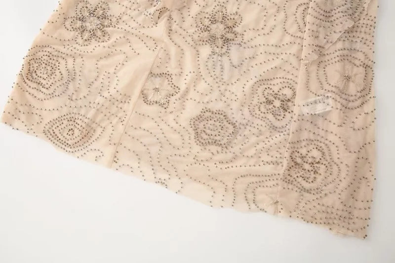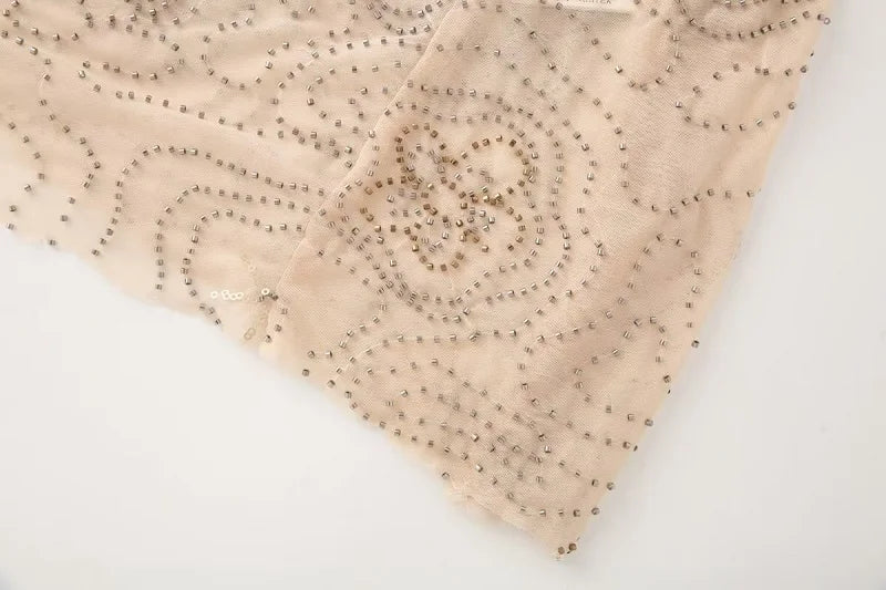 Pair it with silver heels and crystal earrings for a full-glam party look, or contrast its shine with a black leather jacket and boots for a chic, rebellious twist. Whether it’s a cocktail soirée, summer gala, or celebratory night out, this piece brings the glow wherever you go.