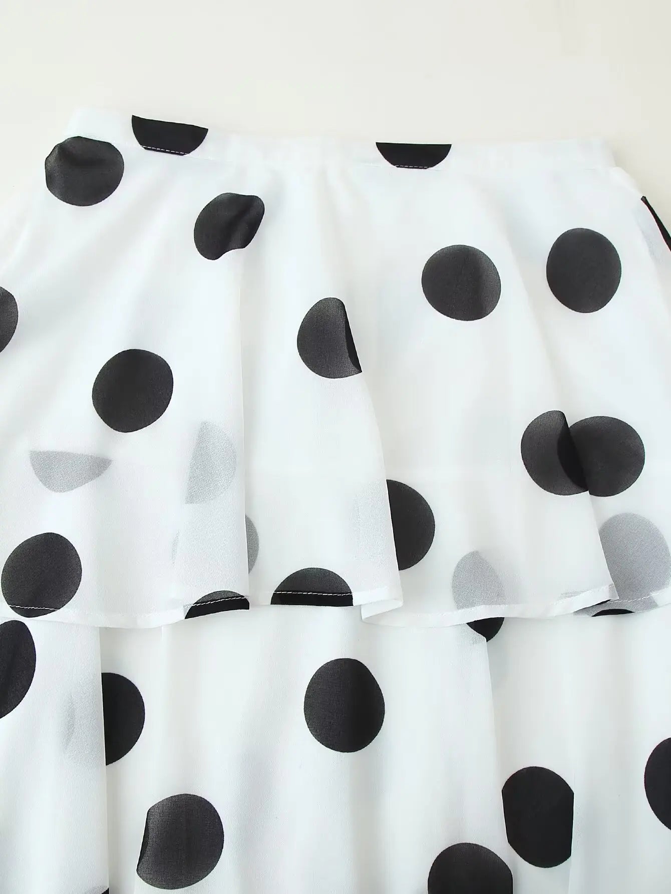 Made from a high-quality blended polyester fabric with over 96% synthetic fiber content, this set feels light yet substantial. The polka dot print delivers timeless charm with a hint of retro influence. The crop top closes with a hidden back zipper, while the skirt features a zipper fly for a seamless fit. With no added decoration, the clean lines and strong tailoring let the print and silhouette do all the talking.