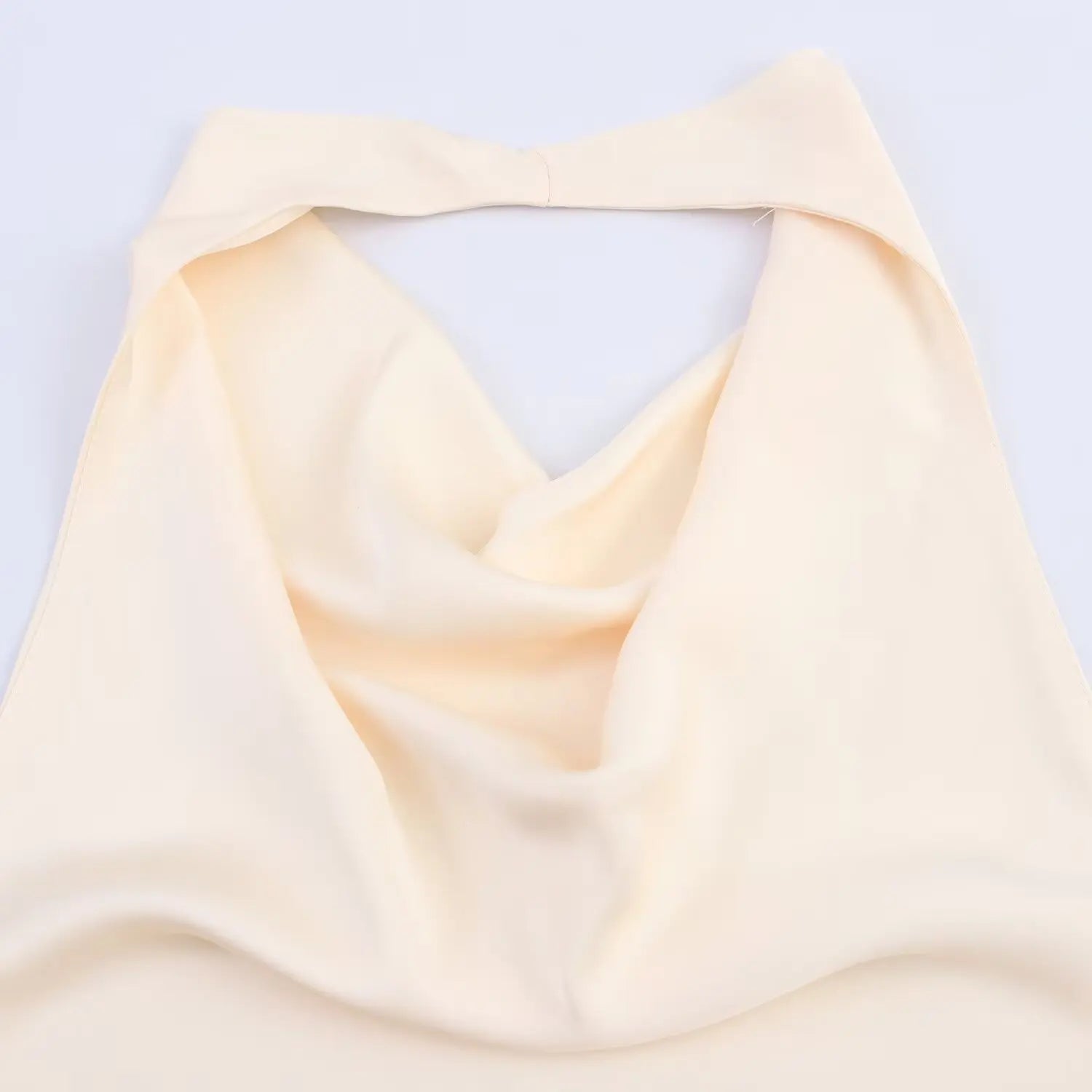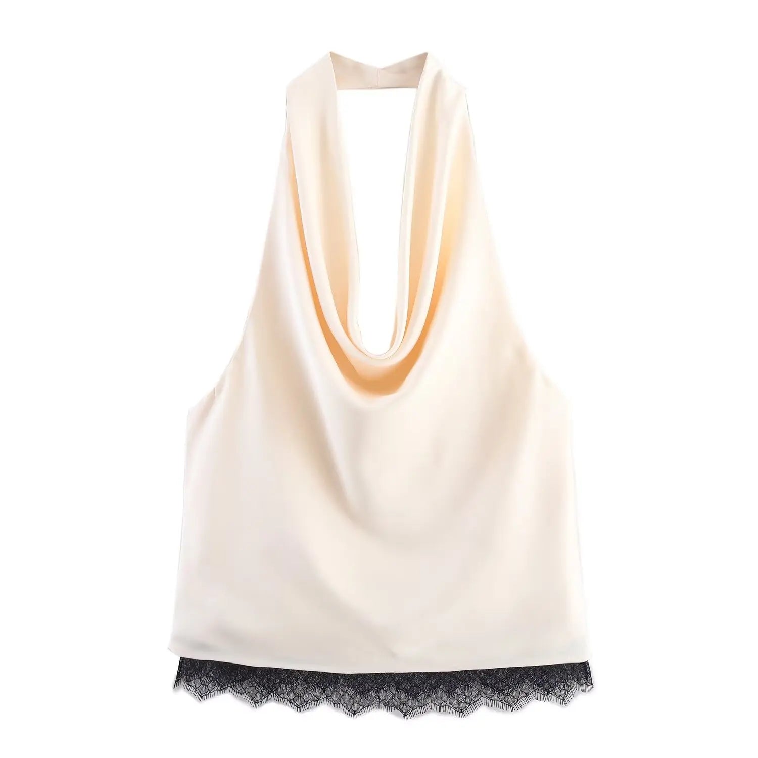 Elevate your summer wardrobe with this elegant two-piece set featuring a lace-decorated satin halter collar top paired with a coordinating lace-adorned satin midi skirt. The delicate lace accents add refined texture, while the satin fabric offers a smooth, luxurious finish. Designed for comfort and sophistication, this set is ideal for warm-weather occasions where style and grace are paramount.
