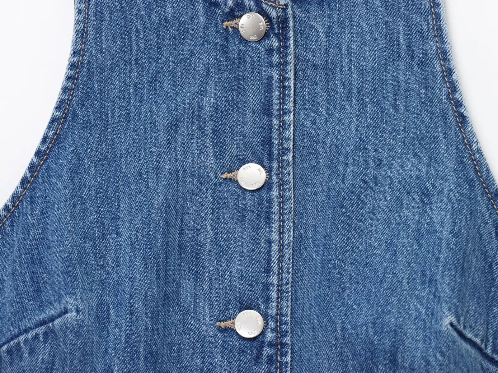 The Summer Retro Sleeveless Denim Mini Dress is a fresh take on classic denim styling with a playful modern twist. Featuring a round neckline, sleeveless cut, and a flattering A-line silhouette, it’s designed to highlight effortless femininity. The single-breasted button closure down the front adds a retro touch, while the above-knee mini length makes it the ultimate hot-girl summer staple.