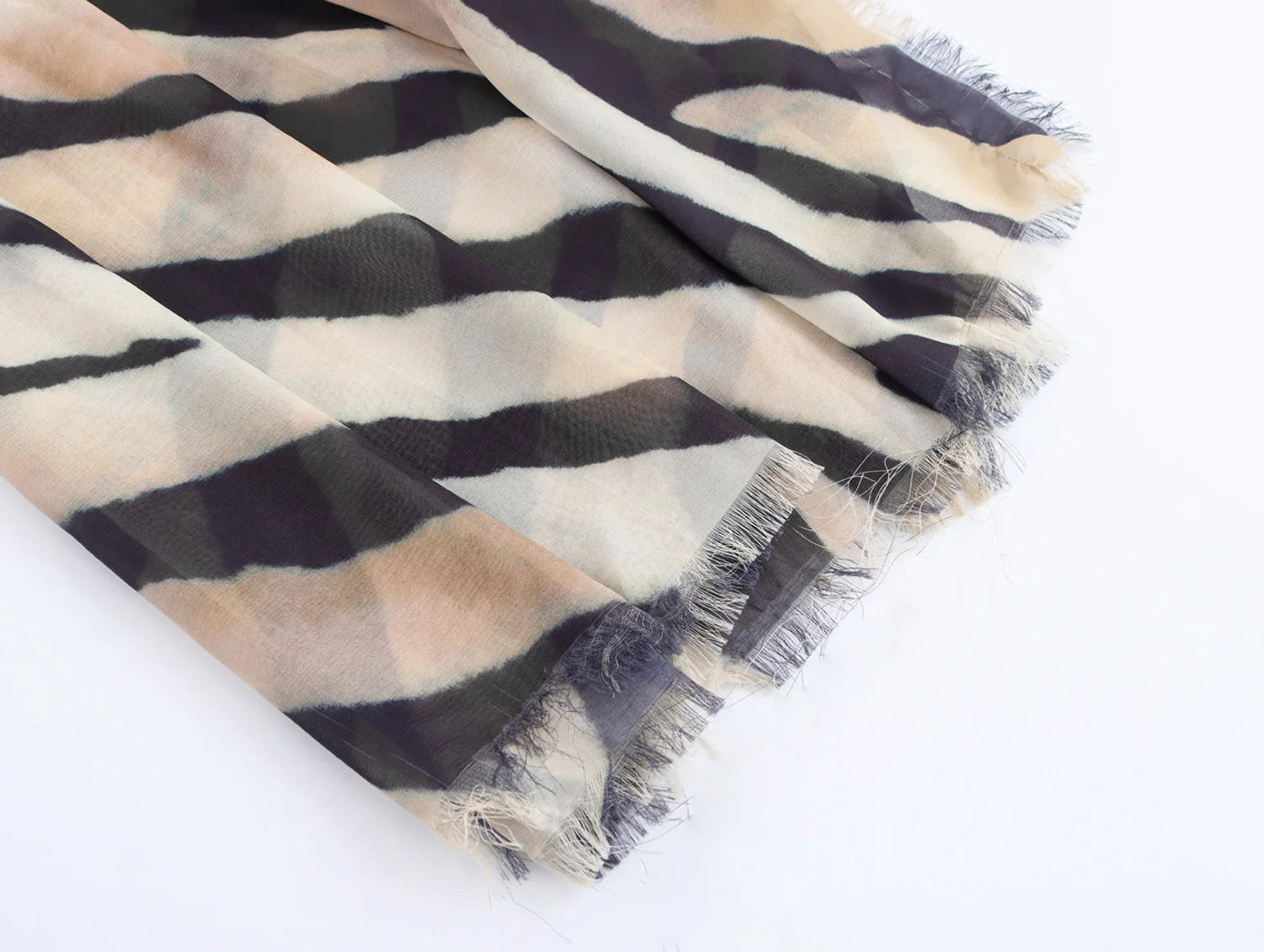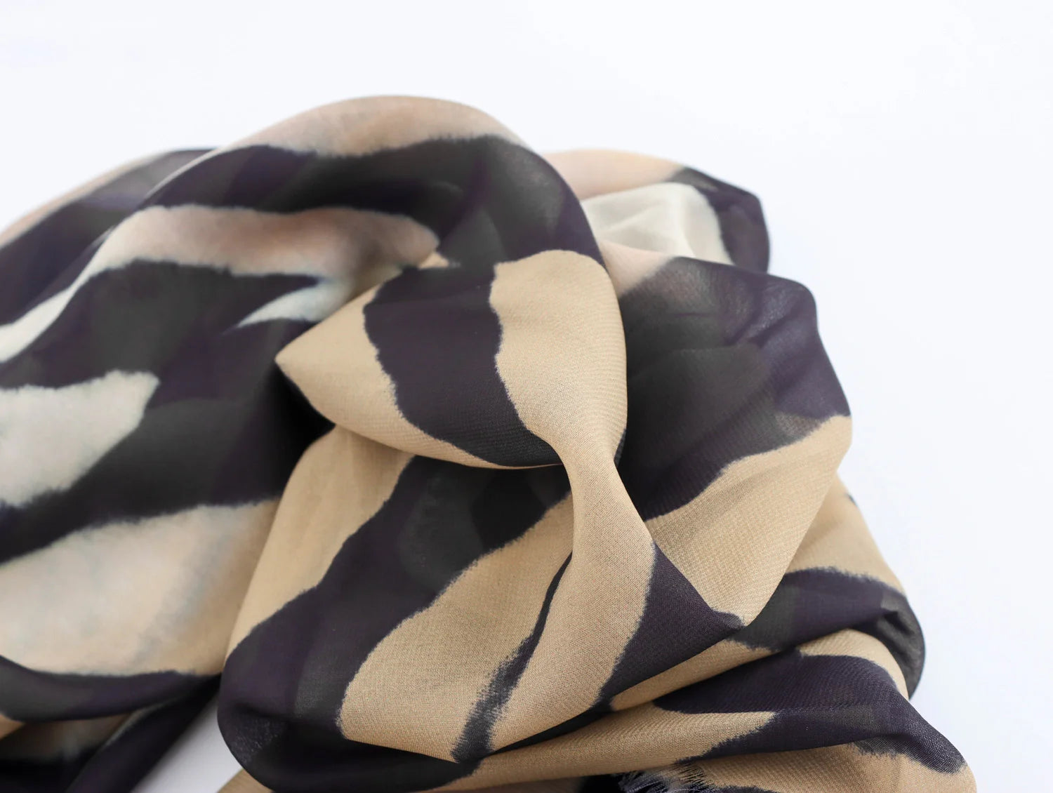 Expertly woven from high-quality polyester, this scarf mimics the smooth, glossy texture of silk while offering durability and easy care. The thin, lightweight construction makes it perfect for layering without adding bulk, while the striking animal print design gives it a timeless yet trendy appeal.