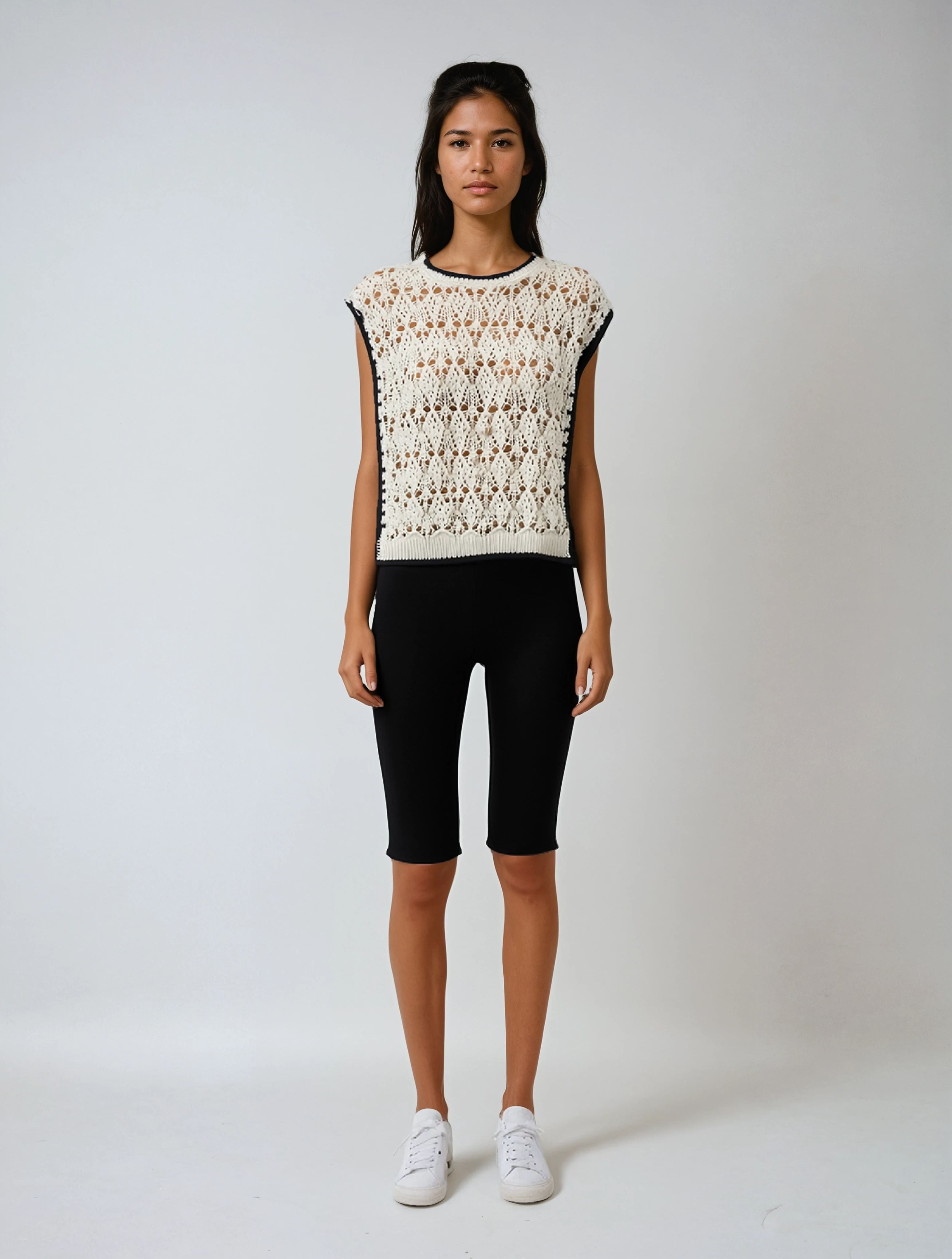 Pair it with high-rise shorts and slides for an effortless weekend look, or style it over a crisp white shirt with tailored trousers for a chic layered outfit. Add bold earrings to enhance the color-block design, or keep accessories minimal for a clean, modern aesthetic.