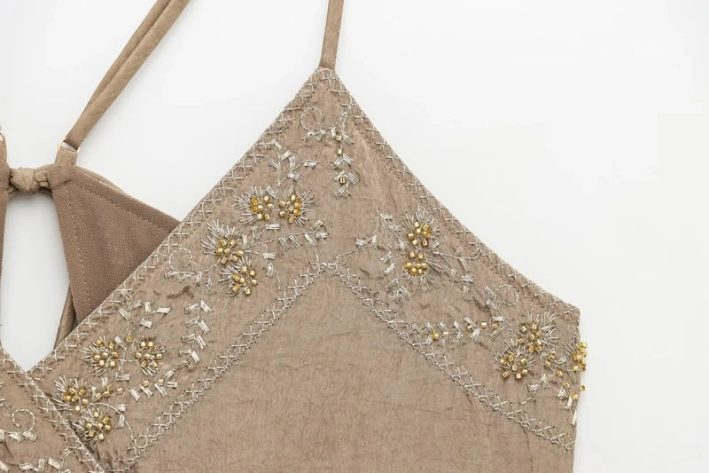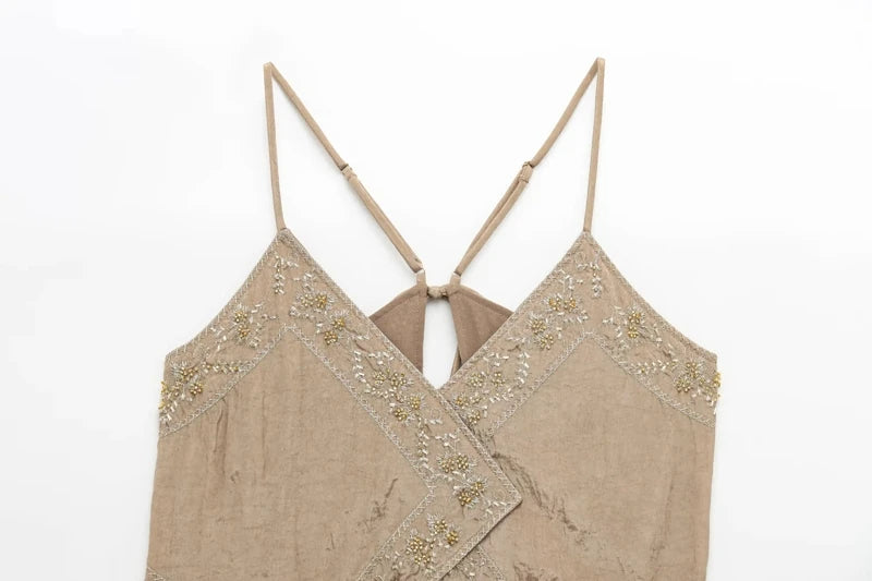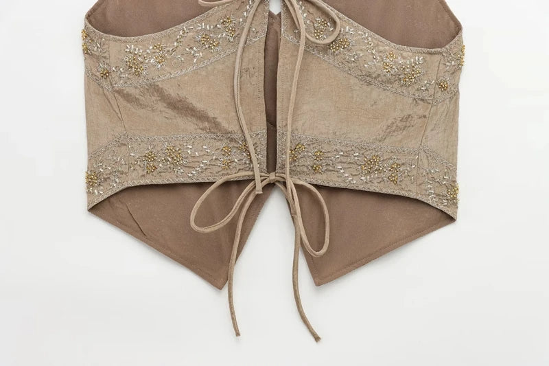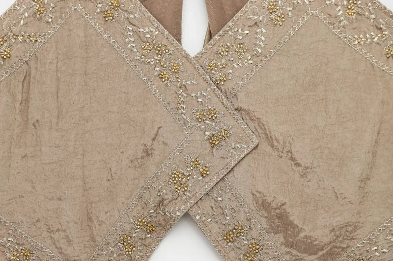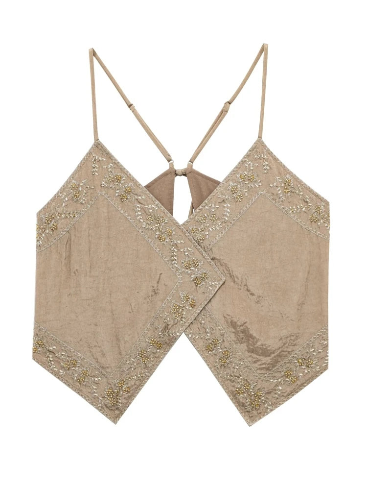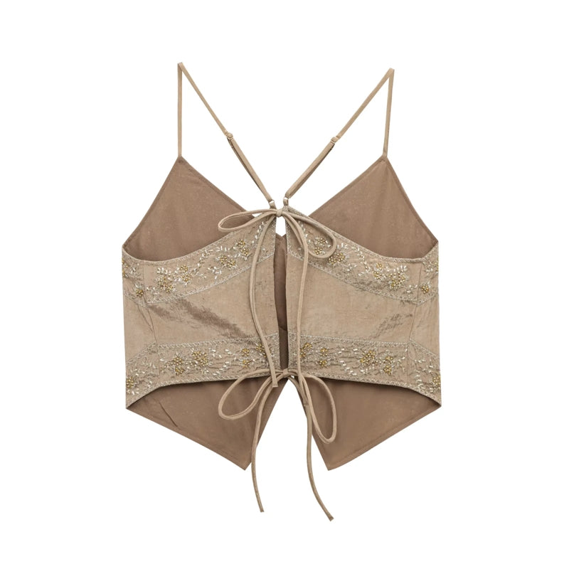 Pair with a flowing maxi skirt and strappy heels for a garden party, or wear with tailored shorts and wedges for a resort-chic vibe. For evening events, add statement earrings, a sleek clutch, and high-waisted satin pants to transform the look into a sultry night-out ensemble.