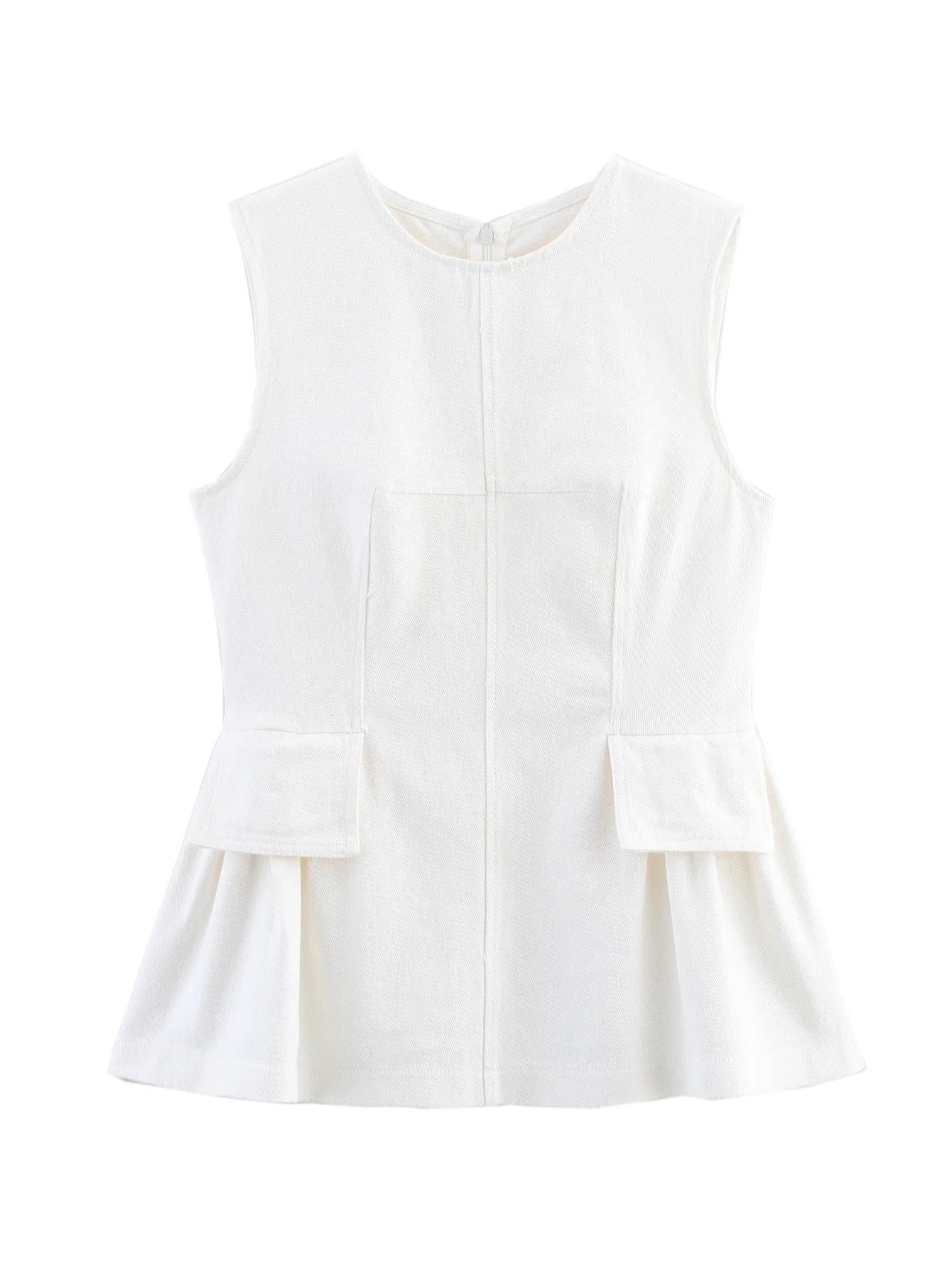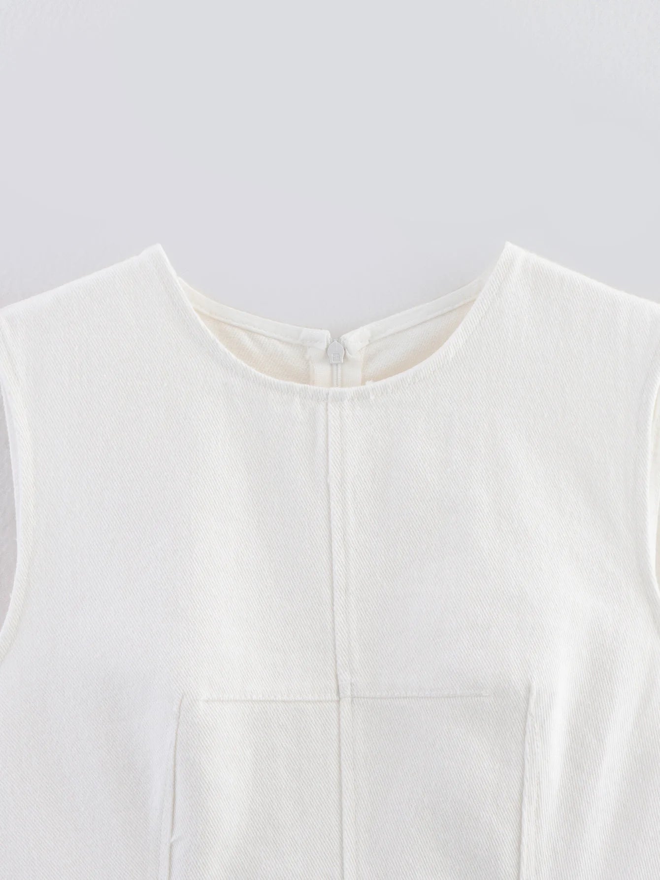 Cut in a regular length, the top provides a flattering silhouette that pairs well with both casual and elevated looks. The sleeveless design ensures breathability and comfort during warm summer days, while the back zipper allows for easy wear. As the fabric is non-stretch, it delivers a structured fit that stays true to size.