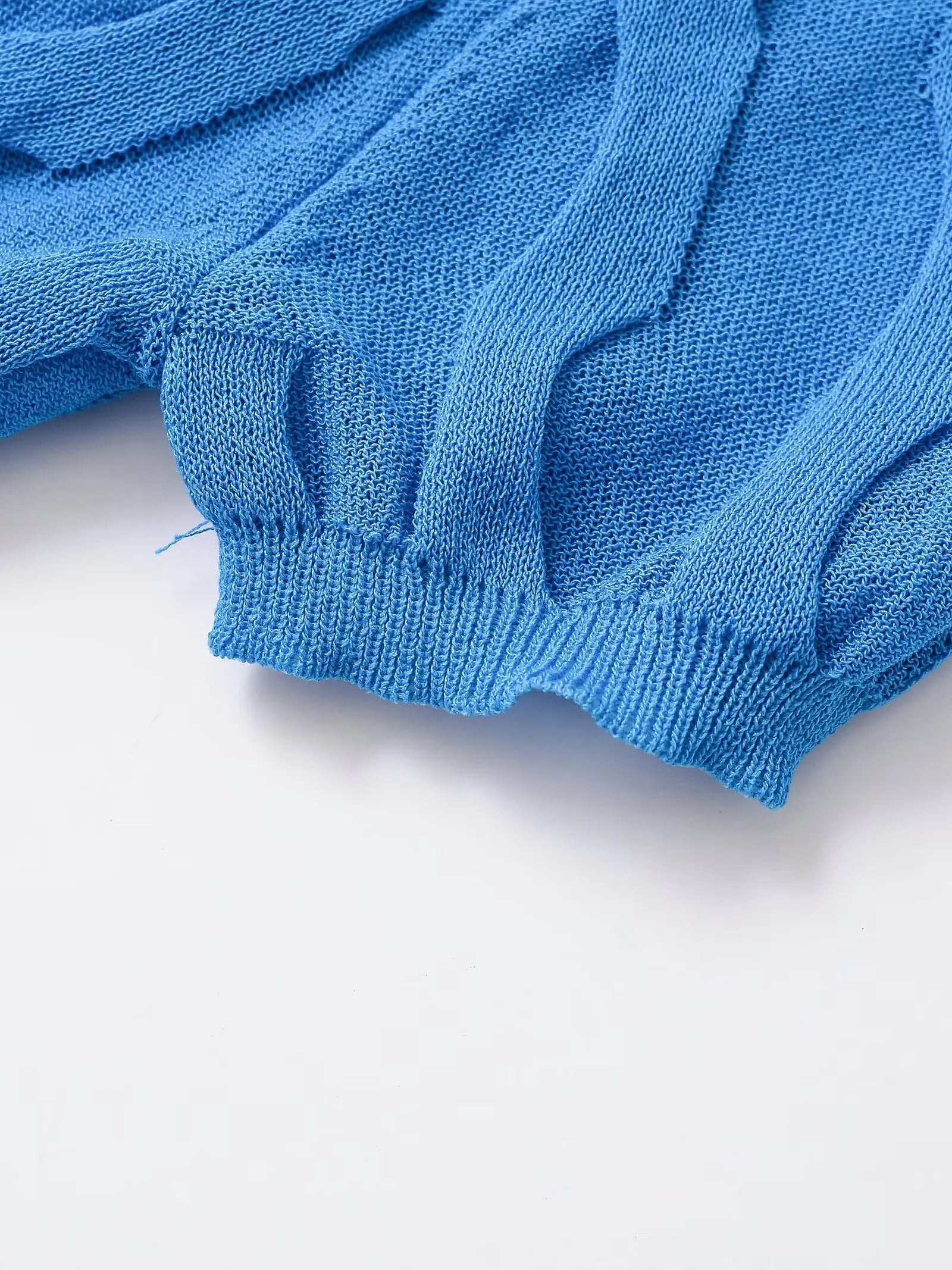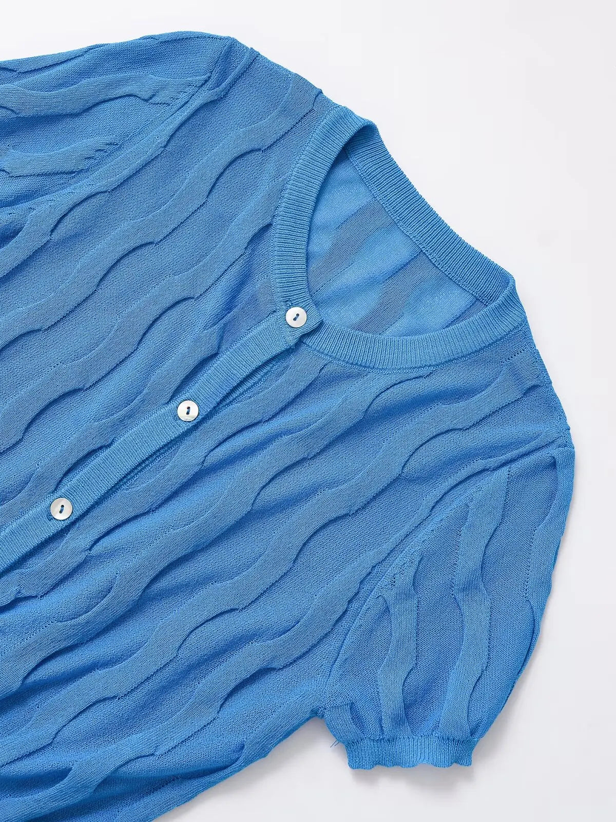 This summer women's knitted jacket combines simplicity and versatility in a casual design. Featuring a round neck and short sleeves, its textured knit provides lightweight comfort perfect for layering. Ideal for transitional weather, this piece pairs effortlessly with various outfits, offering both style and breathability for everyday wear.