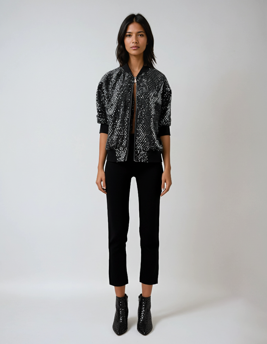 From evening glam to street-style edge, the Black Sequins Jacket adapts to every occasion. Dress it up with tailored trousers and heels for a dazzling night out, or throw it over jeans and sneakers to bring instant sparkle to your everyday look. For maximum drama, pair it with an all-black ensemble and let the sequins take center stage.