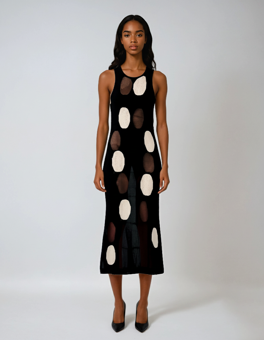Let the dots do the talking—pair it with white sneakers for a cool, graphic daytime look, or add strappy heels and red lipstick for summer nights out. Throw on a cropped denim jacket or a wide-brim hat to play up the retro feel. Ideal for beachside dinners, rooftop drinks, or art gallery strolls.